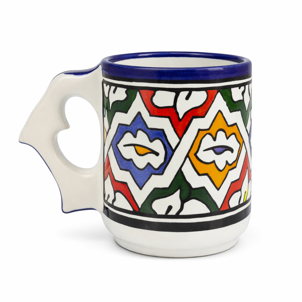 تُشكَّل كل قطعة وتُزخرف وتُطلى يدويًا، مما يجعل كل كأس فريدًا مع اختلافات طبيعية تعكس الحرفة اليدوية الأصيلة.
