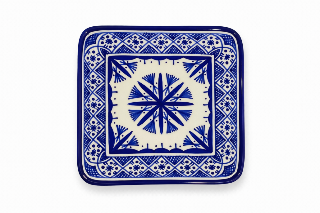 SKU: PLT-FES-SQR Categories: Ceramics / خزف مغربي, صواني و أطباق التقديم — Trays & Serving Dishes, طبسيل مربع - Square Trays Tags: أدوات مائدة مغربية, خزف فاس, خزف يدوي, ديكور مغربي, صناعة يدوية, صواني خزف, صينية تقديم, صينية مغربية, طبسيل مستطيل غارق, فخار مغربي, فن تقليدي